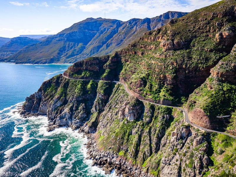 - Vous emprunterez la route panoramique de Chapman’s Peak, avec ses 114 courbes sinueuses et à flanc de montagne. Les vues imprenables sur l’océan Atlantique et les falaises majestueuses, en font une expérience exaltante. De quoi emmagasiner de merveilleux souvenirs des splendeurs naturelles de Cape Town.
